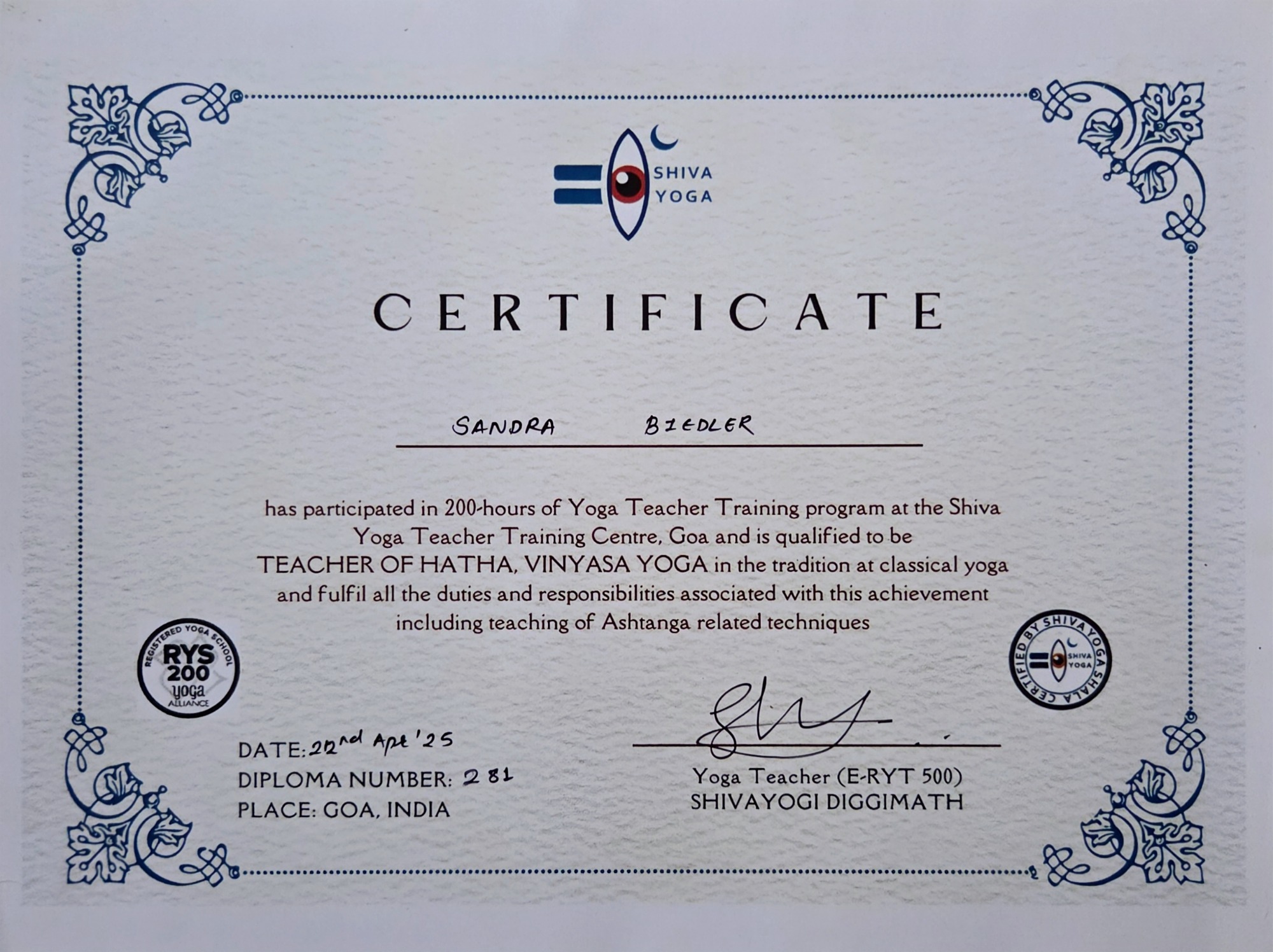 • 500h Hatha/Vinyasa Yogalehrerin (Yoga-Alliance zert.)