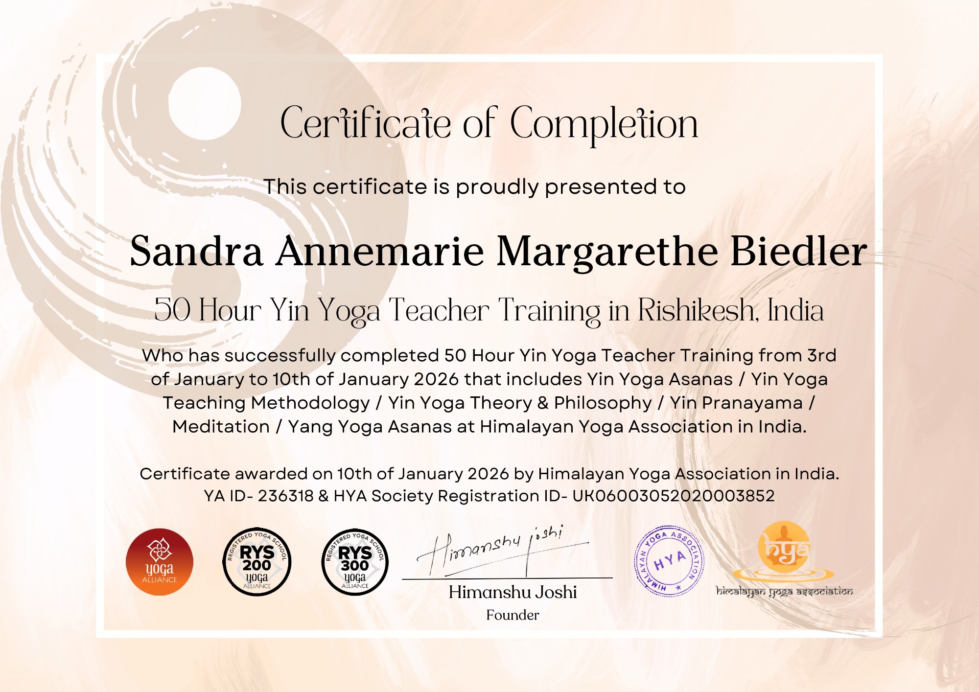 • 100h Yin Yogalehrerin (Yoga-Alliance zert.)